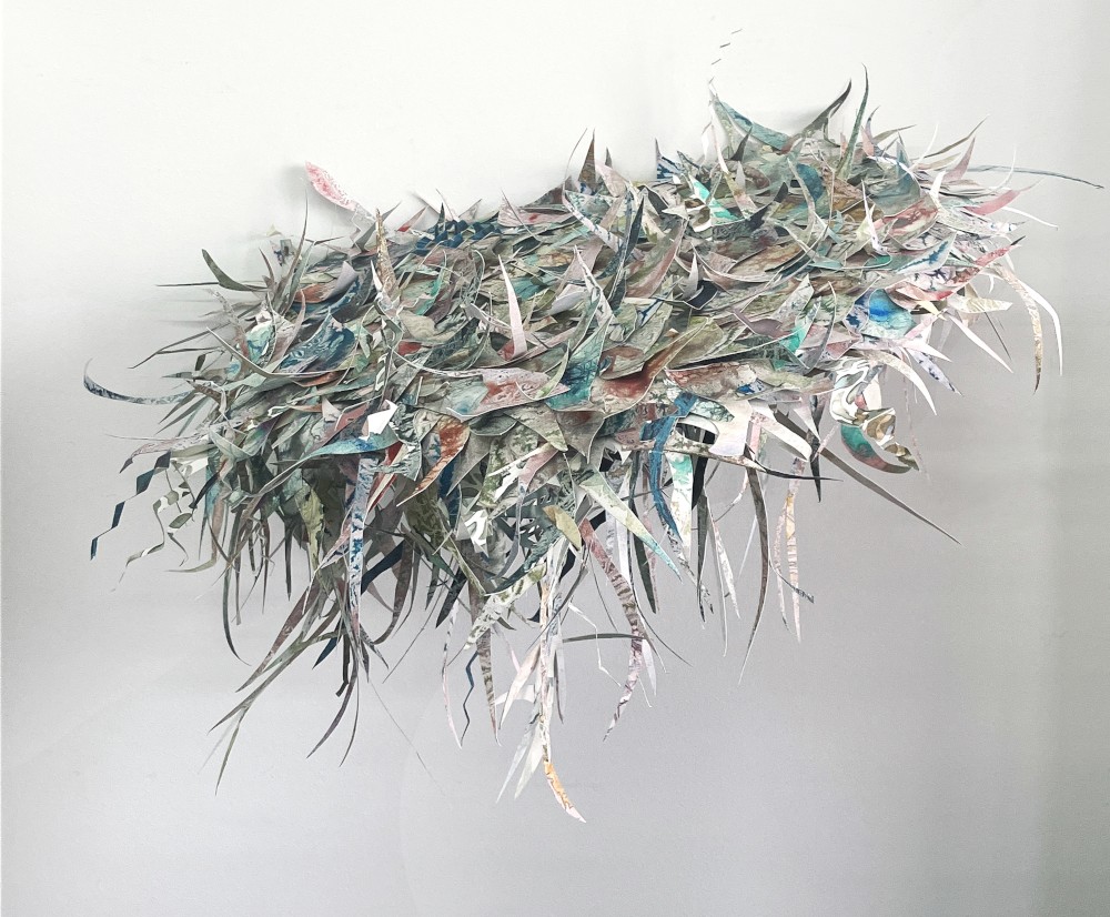 Mayumi Okabayashi’s artistic work reflects the examination of time and spatial dimensions, based on her own experiences. She attempts to hold on to dynamics found in nature, e.g. from the cell to the plant and back, without fixing them. She also tries to depict stasis and movement simultaneously, the drifting apart and coming together again, as well as the states in between.